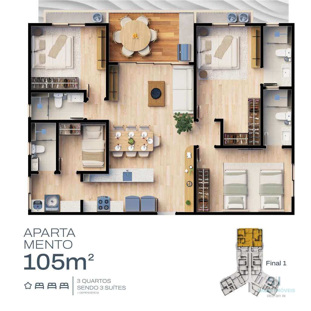 apartamento com 03 suítes mais dependencia (105,06m²).