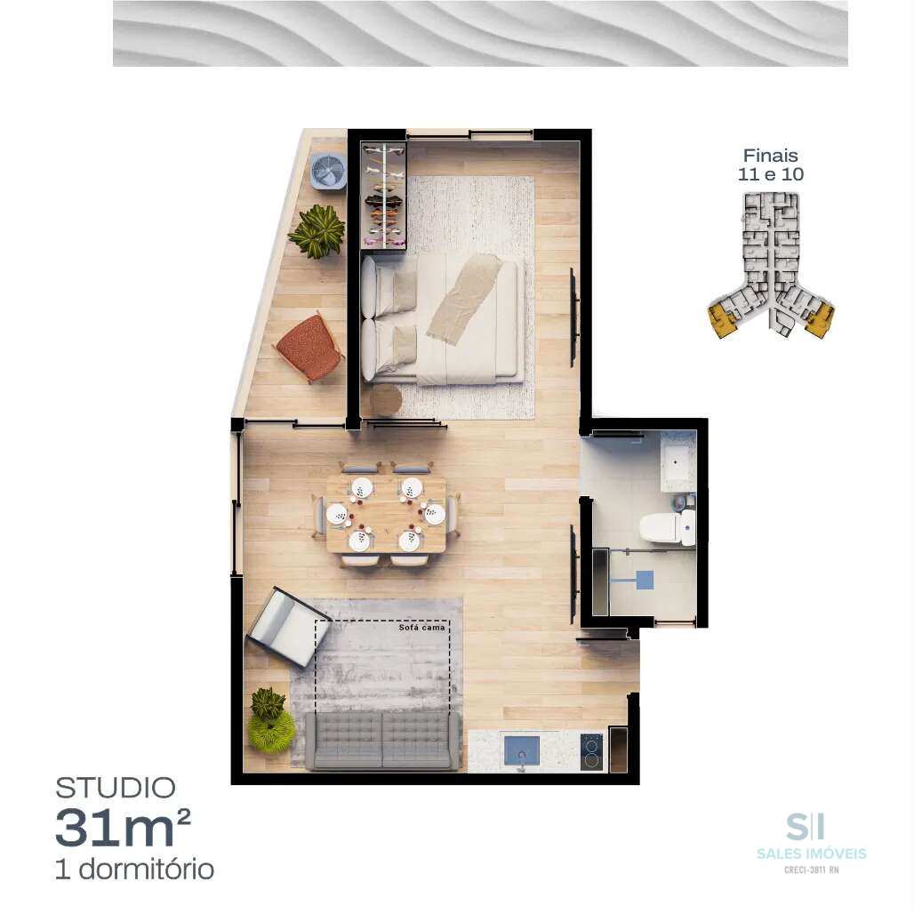 Apartamento apartir do tipo studio 01 qaurto (31,15m²),