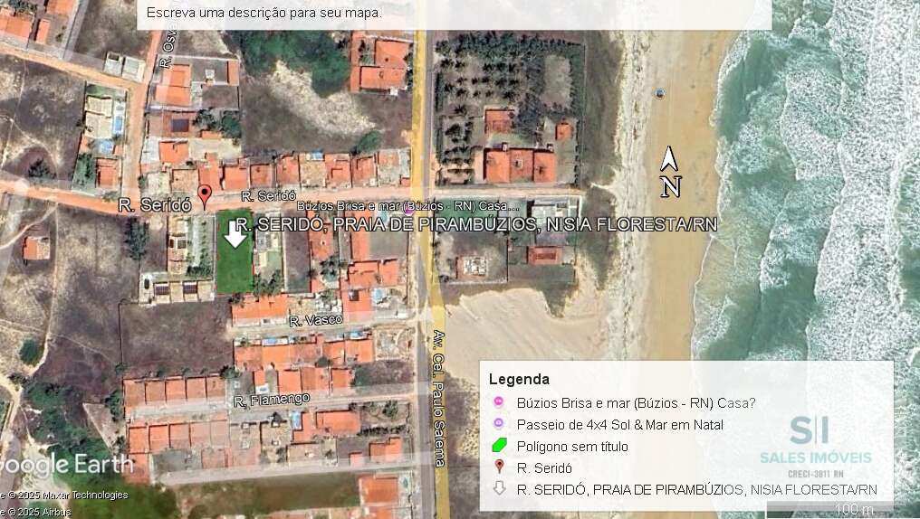 Vendo terreno na praia de Búzios, município de Nísia Floresta/RN, medindo 19,50m (frente)x 22,00 (fundos) x 45,00 (laterais) localidade que se encontra o terreno esta em uma região bastante povoada, onde já se encontra moradores permanentes, a 300m da orla da praia de Buzios, pertinho do parque aquático, barracas na orla, assim como também encontra se na região restaurantes, mercearias, farmácia, posto de saúde, pertinho do maior cajueiro do mundo na praia de Pirangi.